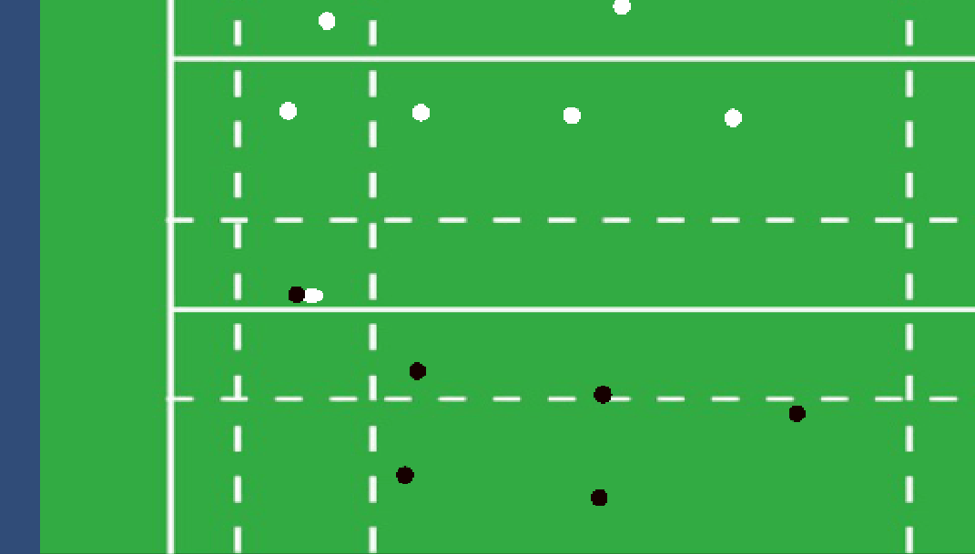 I have implemented a basic chasing script for the AI and set them to "tackle" their opposite character. To create the different difficulties in each level I will adjust the speed of which the opposition chases up to the players characters reducing the time to make a decision and make the right pass. the other way each level will be adjusted is who the opposition is targeting creating a correct passing choice to get through the line this will be changed in each level.